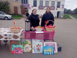 Ребята с большим удовольствием продавали выпечку и картины, сделанные своими руками