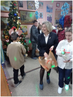 Атмосфера на празднике была новогодняя. Дети выразительно рассказывали стихи, исполняли танцы, пели веселые песни. Ребята вручили новогодние открытки и ангелочков, которые сделали своими руками.